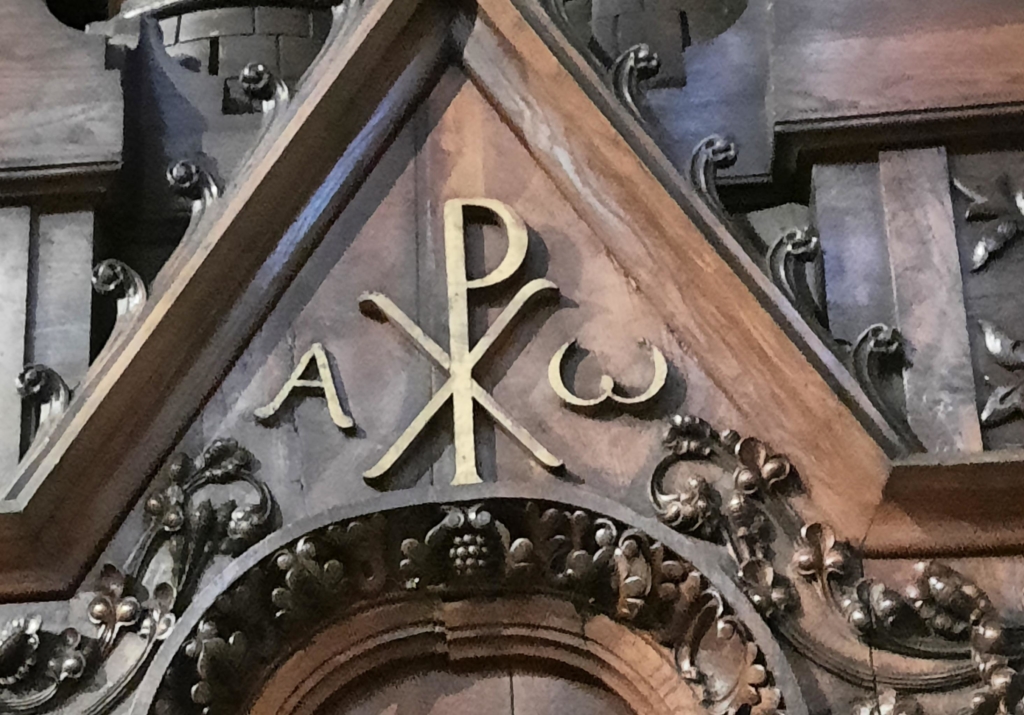 En illustration, le chrisme de la chaire de la cathédrale Saint Maurice d’Angers, réalisée par l’abbé Choyer en 1855