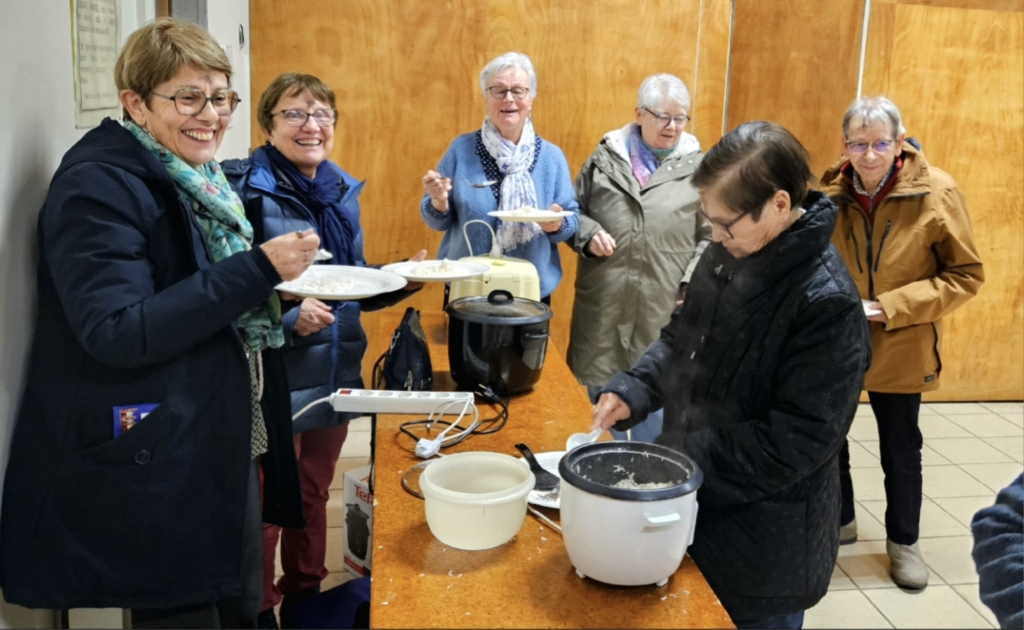 Sœur Claude Marie dans son message pour l’assemblée paroissiale expliquait comment, selon leur charisme, elles donnent à manger à des gens de passage, ou de l’argent ponctuellement à des familles dans le besoin.